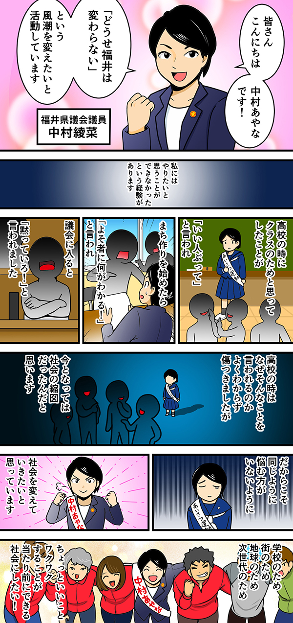 | 平成31年 | 福井市議会議員に当選(3期目)。 |